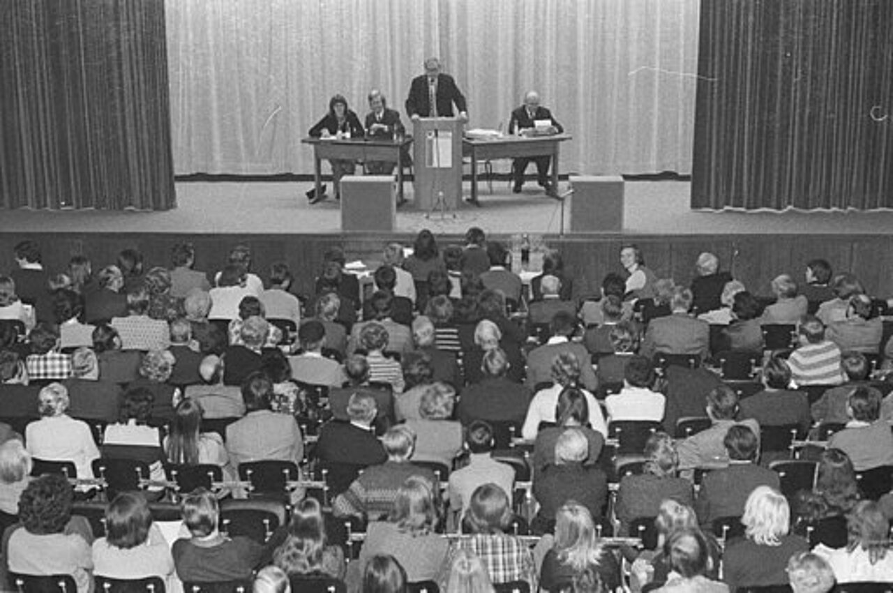 Foto: Stadtarchiv Kiel, CC BY-SA 3.0 DE <https://creativecommons.org/licenses/by-sa/3.0/de/deed.en>, via Wikimedia Commons <https://commons.wikimedia.org/wiki/File:Politische_Veranstaltung_der_CDU_und_Jungen_Union_im_Klausdorfer_Hof_(Kiel_56.040).jpg>