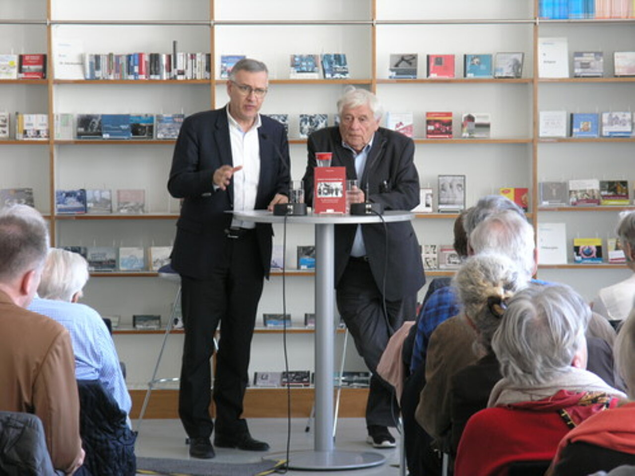 Mit viel Beifall wurden Wolfgang Benz und Stefan Schröder verabschiedet. Die Gäste konnten im Anschluss das Buch von Wolfgang Benz „Gewalt im November 1938“ mitnehmen und signieren lassen.